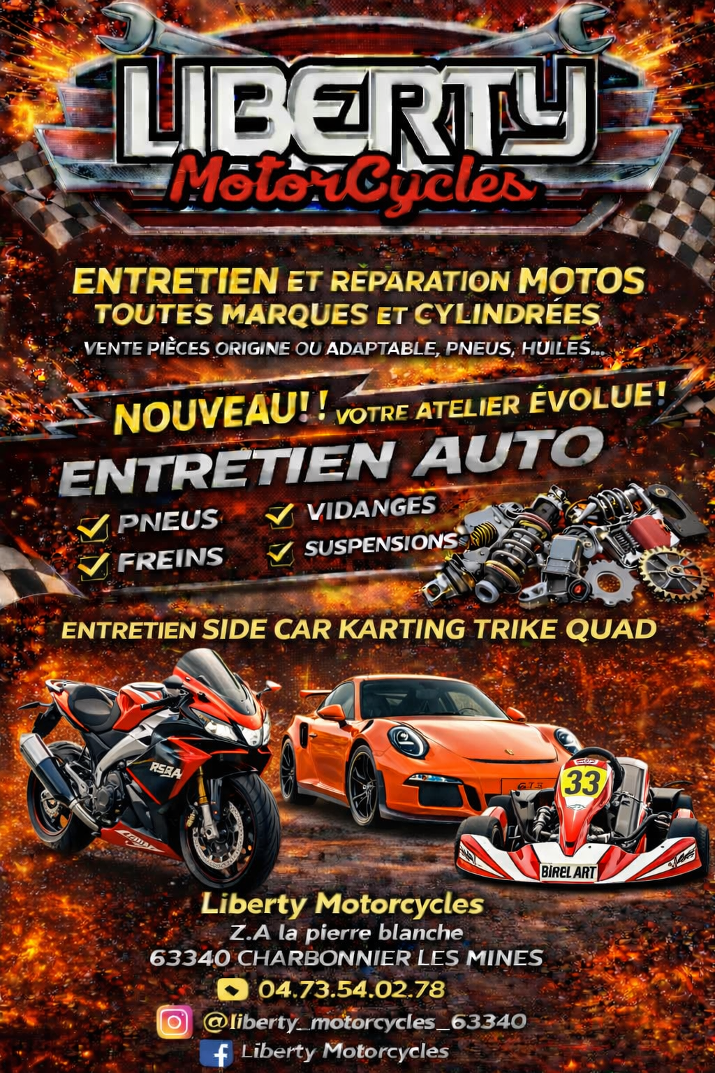 Nous faisons les moteurs de moto, scooter, quad (sous conditions), mobylette, karting et auto (sous conditions)